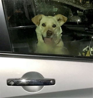 お父さんやお母さんが買い物から戻ってくると、ルビーは運転席や助手席に移動して待機中。私もときどき、シートの上に出て叱られます。
