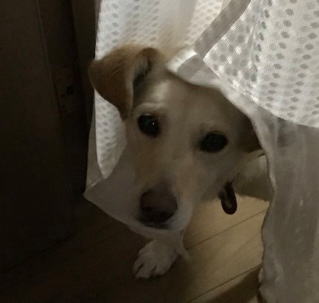 私は、気温の変化が激しくて、それとルビーの相手が大変で、少しお疲れ気味。一方、ルビーは元気モリモリで、いつでもお母さんの前を歩くのでジャマ子と呼ばれています。カーテンの下からのぞき込む姿はかわいいのですが。 |