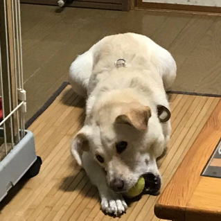 テニスボールが大好きで、ガシガシしているうちに、表面がはがれてしまいました。しばらくすると、ボールがのっぺりして完全に表面の皮が分離状態。