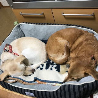 3月も半分過ぎたのに、今日はものすごく寒いです。だから、ルビーとくっついて寝ています。