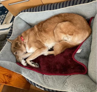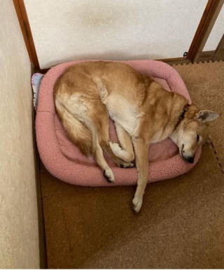 昼間は暖かいけど朝夕は結構冷えます。実は、このベッドはホットカーペットの上にあるので、ぬくぬくなんです。 |