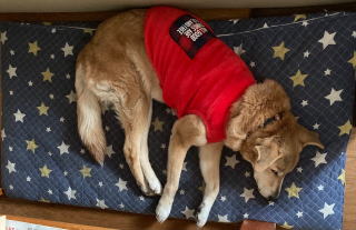 寒くなりました。お母さんがマリーの体が冷えないようにって、ベストを買ってくれました。真っ赤なベスト気に入ってます。