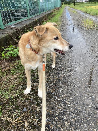 24日は台風の雨の合間に朝の散歩に連れて行ってもらいました。