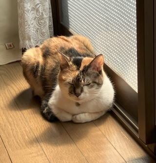 杏は窓際の日の当たるところで眠ってしまいした。窓には、光に反応して発熱するシートが貼ってあるので結構暖かくなっていると思います。