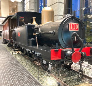 明治4年、英国のヨークシャー・エンジン社製造で明治5年「10号機関車として新橋〜横浜間で使用されていました。明治42年に「110号」に名前を改められて大正7年まで活躍。錆の除去や破損箇所を修復して晩年頃の姿を再現し、令和2年に旧横浜停車場の地に戻りました。