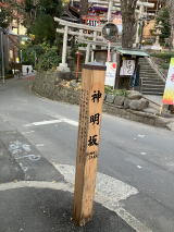 天祖神社を元神明というところから神明坂と呼んだ。馬場坂という説もあるが、綱の手引坂との混同があるらしい。