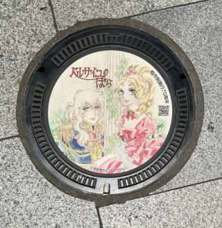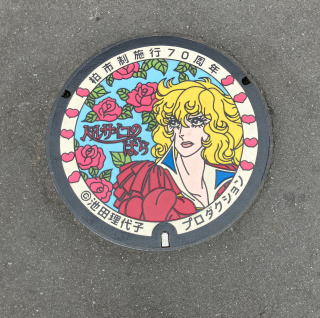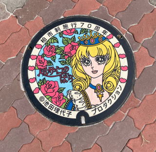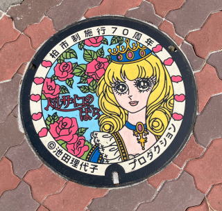 「ベルサイユのばら」が作者の池田理代子さんが柏市在住時代に描かれたのが縁で、市制70周年を記念してデザインマンホールを作ったそうです。ほかに、柏高島屋前と柏神社前にあるようです。