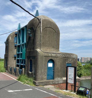 多摩川の水を農地に届けた六郷用水が都市化進行で生活排水が増え、大雨が降ると度々あふれたため、多摩川が増水すると用水路に逆流することもあり、排水を強化し、逆流も防ぐ水門として設置されたそうです。なお、今も現役