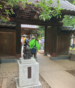 | 豪徳寺の招き猫は江戸時代の井伊直孝が門前の猫の手招きによって豪雨を逃れたのが縁らしい。井伊家の菩提寺になっているそうで、奥には井伊家代々のお墓もある。滋賀県彦根のご当地キャラの「ひこにゃん」は井伊家の赤備えとこの招き猫によるらしい。 |