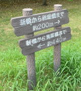 手賀沼サイクリングロードでは東西の両端の橋(手賀曙橋、北柏橋)からの距離(上)。