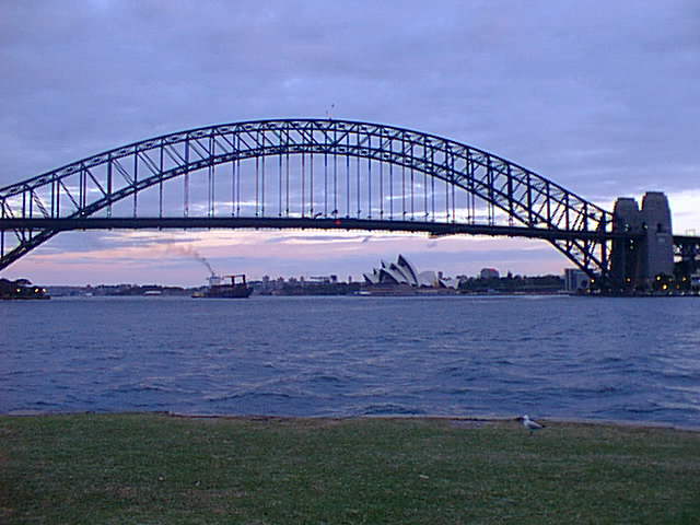 | この橋はハーバーブリッジ。向こうに小さく見える建物が有名なオペラハウス。 |