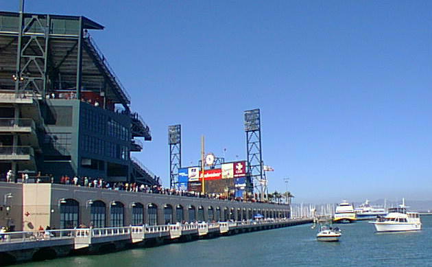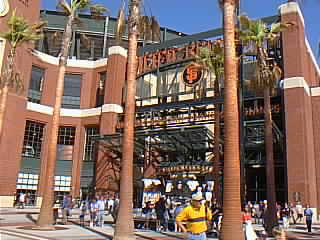 上の写真が入り口で、下はライト側スタンドの外。バリーボンズの場外ホームランボールをボートで拾いに行くので有名。 |