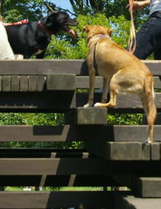 ドッグランで一休み。マウントしてくるワンコは嫌いです。