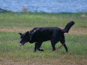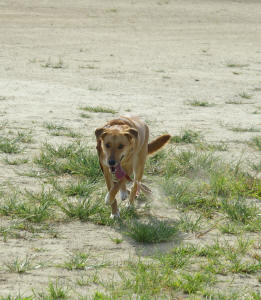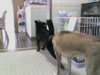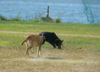 いを出しても、ラブの方は一向に意に介さず。たまに、左の写真のように相手をしています。 |