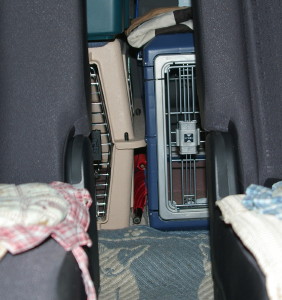ワンコたちはスライドドアから乗って、そのまま後部座席にある自分のキャリーケージまで行きます。左がラブ用、右がマリー用です。