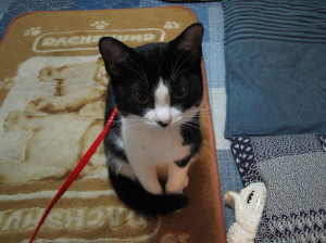 小豆も少し運動しました。お外が怖くて腰が引けています。
