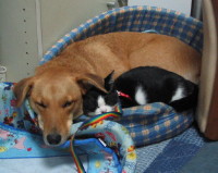2007年5月30日生。 性別: メス Noriさんファミリーになった日: 2007年7月29日 好きな食べ物: ジャコの干物 好きなもの: 100円のねずみのおもちゃ 好きな場所: 私のケージの3階(ラブ姉さんやマリー姉さんを見ていられるから) いやなこと: 暴れすぎるとケージの中に入れられること 嫌いなもの: お外(家の中が安心) いつもすること: トイレの後でビニールシートで右手を拭くこと 虹の橋を渡った日: 24年10月24日(17歳) 07年7月29日の柏祭りのあった夜にNoriさんファミリーのガ レージに迷い込みました。お父さんが見つけてくれたのですが、その時顔に傷がありました。翌日、お医者さんに連れて行ってもらって、猫の結膜炎と鼻炎だと 診断され、病気が治るまでは、Noriさんファミリーにおいてもらうことになりました。Noriさんの家ではラブ姉さん、マリー姉さんがいたのですが、仲 良くしてもらい、結局9月16日にNoriさんファミリーのメンバーになることが決まりました。 私は、とてもいたずら好きでお母さんをいつも困らせています。マリー 姉さんにもよくいたずらをします。でも、いたずらがひどいとラブ姉さんにしかられます。 「こまめ」という名前は、お姉さんにつけてもらいました。みんなは 「マメちゃん」と呼びます。 私のケージは、中が3層構造です。お父さんに作ってもらいました。 1番下が運動場。2階がトイレ、食事の場所。3階が寝るところです。 トイレの砂が巻き散らないように後ろ側には透明のビニールシートでカ バーしています。 トイ