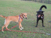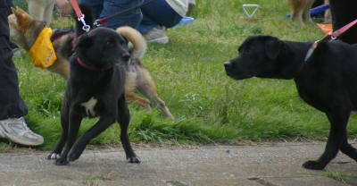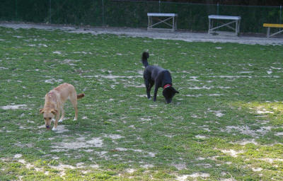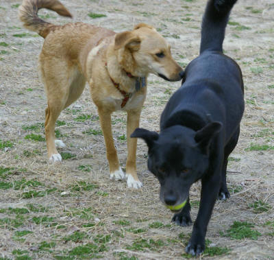 天気はよかったけれど、けっこう風が強かった。たくさんのワンコがいたので、ラブもマリーも「遊ぼう」ポ−ズの連発でした。