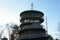 てっぺんに付くと、日の丸展望台と言うのがあって、そこからよく大阪の街や大学を見たりしていたそうです。私とマリーも展望台にあげてもらいました。 石でできた碑に「日の丸展望台」と書