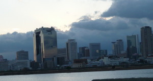 年01月03日 やっと、柏 に帰ります 新年、明けましておめでとうございます。 新年のご挨拶に初日の出の写真と、思ったのですが、あいにくの雲でお日様を見ることができませんでした。朝早くおきてお父さんと一緒に淀川に行きまし た。ほかにも、初日の出を見ようとたくさんの人がいます。お父さんは、初日の出が見たかったようですが、私たちはグラウンドに降りてガウガウがしたい。 ビルの谷間から、初日の出が顔を出し