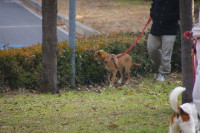 しています。ほかにもたくさんワンコがいました。でも、小豆は外が怖いです。
