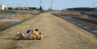 年01月04日 やっぱり家 の近くがいい 今日は朝からいつものように家の近くの川沿いでの散歩です。いつもと同じように散歩して、同じようにウンコして。今日は暖かくてちょうどよかったです。 いつものにおいだね。やっぱり、家の