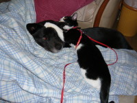 気がつけば、マリーは私のお尻を枕にして↓ ![]() ![]() 夜、ヨーグルトをもらって、おやすみなさい。すると、小豆が私たちのいな