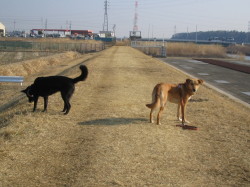 年02月10日 雪が解けて しまいました 昨日は寒くて雨が降っていました。東京では雪だったようですが、柏では雨のままでした。本当は雪になってほしかったけれど残念です。 お医者さんに行きました。小豆の風邪が治らないのとマリーが時々お尻を擦って座るのでそれを見てもらいました。小豆のほうは続けて目薬を差すことで直る そうです。マリーの方は肛門腺かもしれないということで、お医者さんに絞ってもらいました。あまり気にする必要はないそうです。肛門腺はにおいが詰まって いて、ウンチをするときに一緒に自分の匂いをつけるために出るそうです。家庭犬では、あまり肛門腺は必要なく、手術でとることもできるそうです。とりあえ ず、お尻を擦って座らないか様子を見ます。 体重を測りました。私が18.6kg、マリーが14.7kg、小豆が3.3kgです。寒くて、いつもよりエネルギーを使っています。お母さん、ご飯の量 を増やしてください。 昨日の雨と今日の昼間は暖かかったので、家の前の雪はすっかり解けてなくなってしまいました。これから、暖かくなればいいのに。 朝の散歩のときに、久しぶりにミルコちゃんに会いました。ちょっと、はしゃぎました。 夕方の散歩は、川べりです。鳥たちも少し暖かそうです。 ![]() 鴨や白鳥が泳いでいます。昨日は鷺を
