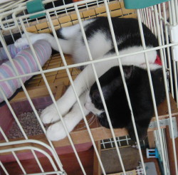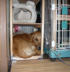 年08月02日 花火は怖い ご不幸があったので、Noriさんファミリーみんなで大阪に行っていました。朝、突然、ご飯をもらってから散歩です。いつもと順番が逆なので、なんか変 だとは思っていました。でも私は、大好きな自動車に乗るのだからあまり気になりません。 小豆は、変な感じがしたのでしょう。朝ごはんを食べたら、吐いてしまいました。なんとなく、小豆の嫌いなお外に連れて行かれる気がしたのでしょう。 大阪に着くと、ずっとお祖父さんのおうちで留守番でした。ただ、親戚の皆さんが順番に「お利口だね。」となでて行ってくれました。 柏には夜中に戻ってきました。お父さんやお兄さんたちが交互に運転してもどってきました。ずっと、ケージの中だったので少し疲れました。 そして、今日は手賀沼の花火の日です。夕方の散歩のときに、ポンポンと音がしていたのでいやな気がしていました。 7時に突然、花火が鳴り始めました。家が揺れるほどの音です。Noriさんちに来て4回目ですが、やっぱり花火は嫌です。マリーは?? マリーは、さあ大変、いつもの洗面所に逃げ込んだり、お風呂の前で小さくなったり、ついには小豆のキャットタワーの1階に入り込んでしまいました。 ![]() 小豆用のサイズのキャットタワーに逃げ込んでしまったマリー。 あとで、ここから出すのにお母さんたちは苦労していました。 私は、じたばたし