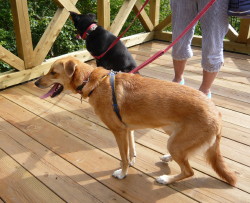 年09月21日 千葉わんの 集まりに行ってきました 昨日、台風が通り過ぎて、今日の朝のうちはいい天気だったのに、昼から雨が降ってきました。今日の千葉わんの集まりはたくさんのワンコが参加するのだけ ど、天気が悪くてかわいそう。雨の中を2:00頃、会場に着きました。 雨が強くなり、しかも雷も鳴り始めたというのに、車を降りてからマリーはグングン、ワンコ達のほうに向かっていきます。お父さんがマリーの後ろでウロウ ロしています。いましたいました、るるちゃんとるる母さんが。マリーの尻尾はブンブングルグル、るる母さんと熱い抱擁です。マリーの足は泥だらけなのに、 るる母さんもお構いなし。マリーは本当に幸せそうです。 雷が鳴ると、マリーの尻尾は下がってしまうのだけれど、しばらくするとまたブンブングルグル、雨の中でも楽しそうです。 おととし、初めてマリーに会ったのもこの千葉わんの会場でその日も雨でした。その時、マリーはまだ4か月のかわいい子犬。そうそう、今日もたくさんの子 犬が里親さんが現れるのを待っていました。みんな、幸せになるといいね。 ![]() マリーは楽しそうです。私はおとなしく座って待っていました。 ![]() ![]() マリーとるる母さんの再会です。マリーは本当にうれしそう。いつものようにペロペロ攻撃です。 マリーは生まれてまだ4ヶ月の8月26日にNoriさんの家に来ました。 もう2歳になるのに、るる父さん・母さんのところでお世話になったことをよく覚えています。 るるちゃんもお久しぶりです。こんにちは。 マリーは千葉わんのカレンダーにも出ています。誕生日の4月15日 のところです。 千葉 わん トップページ http: //animal-note.cool.ne.jp/menu_index.html 千葉WANイベント報告 http://chibawan.exblog.jp 家に帰ってきて、ヨーグルトをもらいました。小豆は和室でお兄さんがセットしたおもちゃに飛びついて遊んでいます。 ![]() ![]() ↑ヨーグルトのカップを加えて移動します。廊下の端でゆっくり食べるのです。 小豆が上からつるされたおもちゃで遊んでいます。動きが速いので少しぼけています。↑ お父さんの会社の近くで地域猫の活動をしているそうです。人懐っこいかわいいニャンコたちがいるそうです。どのワンコも ニャンコも幸せになって欲しいです。 ![]() |