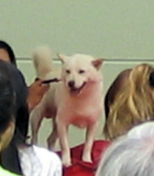 | 09年07月12日 柏にカイ君がやってきました 今日も何んとなく暑そうな1日です。朝の散歩はお父さんが連れて行ってくれましたが、昨日よりは調子が良さそうです。一昨日の晩、少し飲みすぎて、昨日の朝は調子が悪かったそうです。それで、暑い中を、いつものように近くの川の土手を散歩しました。ずっと工事中でしたが、もう少しで終わるようです。 いつもより、少し朝ごはんが早くて、車に乗って、久しぶりのロイヤルホームセンターです。今日は、モラージュ柏に、あの有名なカイ君が来るそうです。きっと、お利口なんだろうな。私は、直接会うことができませんでしたので、お母さんのレポート。
