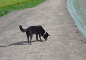 夕方は、いつものように、家の近くに散歩に行きました。でも、出る時間が遅いともう暗くなってきています。