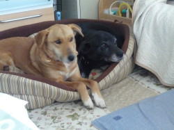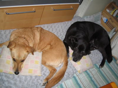 これは私たちのベッドです。大きな方が私用。小さなのがマリー用です。ご飯ができるまで、私たちはおとなしく待っています。 |