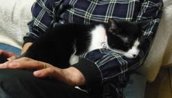 ものすごく人なつっこいです.抱かれていても嫌がりも、逃げようともしません。 |