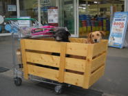 お店の中を回るカートが大きくなっていました。買い物の荷物を置くところは少し邪魔だけど、マリーと二人で入るには十分な大きさです。お母さんたちが買い物する間、カートの中でじっとしていたら、他のお客さんが「おとなしいね。お利口だね。」となでて言ってくれます。だから、ホームセンターは大好きです。