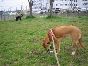 もう春だというのに、今日は寒いです。雨が降りそうです。近くの広場でちょっと走って、雨が降りそうなので、さっさとおうちに帰りました。 |