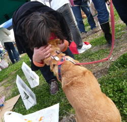 マリーは、様子がわかるのでしょう。車から降りたとたんに、ぐいぐい会場の方に引っ張っていきます。いましたいました。るる父さんとるる母さんです。あれだけ、いろんな人がいても、マリーはまっすぐ向かっていきます。で、出ましたいつものペロペロ攻撃。何回見てもほほえましいものです。
