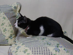 でも、ニャンコらしいのが、誰も気づかないうちに、そっとテーブルの上に登って、ドーナツを食べたりトウモロコシをなめたり、悪い事をしています。