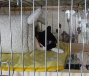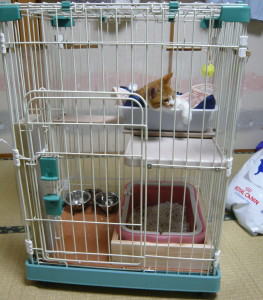 とりあえず、ケージに入れて、小豆がケージの外に出ているときにも合わないようにケージごと和室に置かれています。