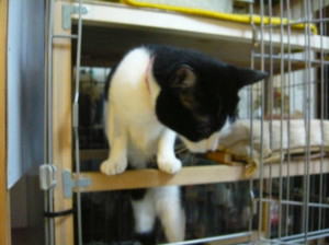昨日、私たちがいつも行くお医者さんに、子猫を連れていきました。お医者さんの話では、「3ヶ月くらいの男の子で、体重は1.7kg。2か月ほどほかの猫と接さないようにして、その後で病気の検査をします」とのことでした。それでその後で、小豆と一緒に暮らしていいかの判断になるそうです。