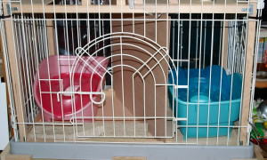 お父さんの話によると、小豆と茶太がもっと仲良くなってきたら、この仕切りは外すそうです。 |