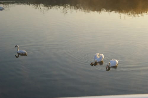 土手を歩いていると、白鳥さんが来ていました。暑い間は見なかったけれど、寒くなったので、手賀沼にやってきたようです。優雅ですね。 |