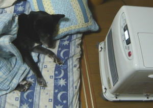 | 新しいファンヒーターが来た日。早速前に陣取りました。やっぱり、気持ちいいです。 |