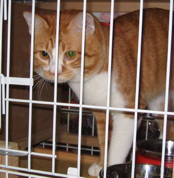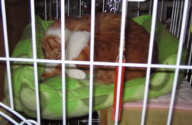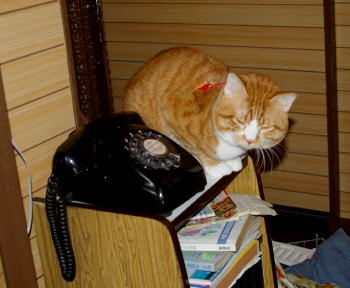 大阪にいるときに、茶太は私たちと並んでケージをおいてもらっていました。ところが慣れないところにいるので、寂しいのか興奮しているのか、小豆にチョッカイを出すは、私たちのケージの中でおしっこはするはで、大変でした。ちゃんと茶太用のトイレは持っていってあったのですよ。でも、まだ、1歳にもなっていないので仕方がないのかもしれません。 それで、草津では、私たちと少し離れたところにケージを置かれていました。茶太は茶太なりに階段を上ったり電話台の上に登ったりで楽しんではいたようです。 ところで、おじいさんのところの電話は懐かしい黒電話です。 柏に帰ってから、お父さんはブツブツ言いながらわたしたちのケージを洗ってくれました。 |