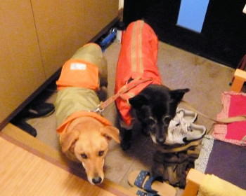 | 11年03月21日 カッパを着せられました 私はカッパが好きではありません。動きにくいし、邪魔になるし、ウンチもやりにくいし、帽子をかぶせられるとずれて前がよく見えなかったりします。
