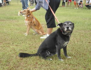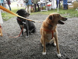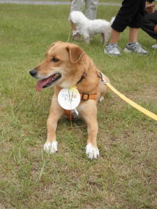 ところが、マザー牧場の近くに来ると雨は小ぶりに変わり、会場では傘を持って出たものの、すぐに車の中に片付けに戻りました。私たちは、朝の散歩のときから雨だったために、ウンコもまだでしたので、会場の芝生をしばらく歩いていると、思わずウンコをしてしまいました。さー、気持ちよくなったので