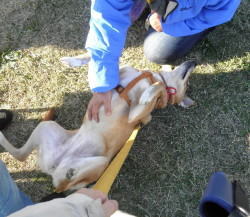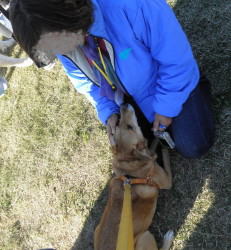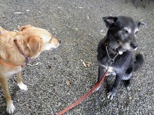 そうそう、受付が終わったころに、るる母さんがいるのがわかりました。マリーは一目散にるる母さんに向かっていきます。いつものペロペロが始まりました。るる母さん、マリーが雨上がりの汚い足のまま飛びついてごめんなさい。