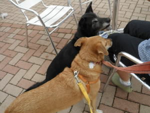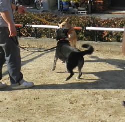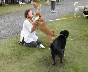 会場に来ているいろんなワンコとお話していました。さすが誰とでも仲良くできるマリーです。 |