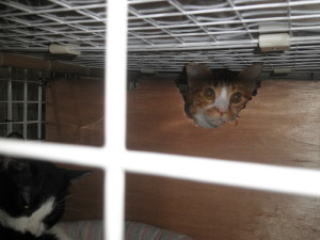 一方小豆はと言えば、おとなしくしているだけでなく、尻尾を茶太の鼻先に持っていったり、このように下から、塀の穴から茶太が顔を出すのを持っていて、下から猫パンチをしたりしています。、 |