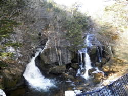 竜頭の滝です。お父さんは、昔、いろは坂を自転車で登って竜頭の滝に来たことがあるらしく、うれしそうでした。昔はさらに金精峠まで登って行ったらしいのですが、今日はここで折り返しです。 |